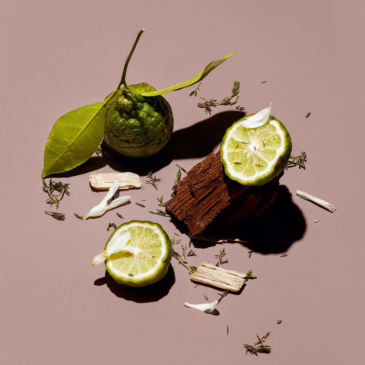 bergamot, lime, thyme, verbena, lavender, jasmine, cedar, musk, ambrettolide, sandalwood