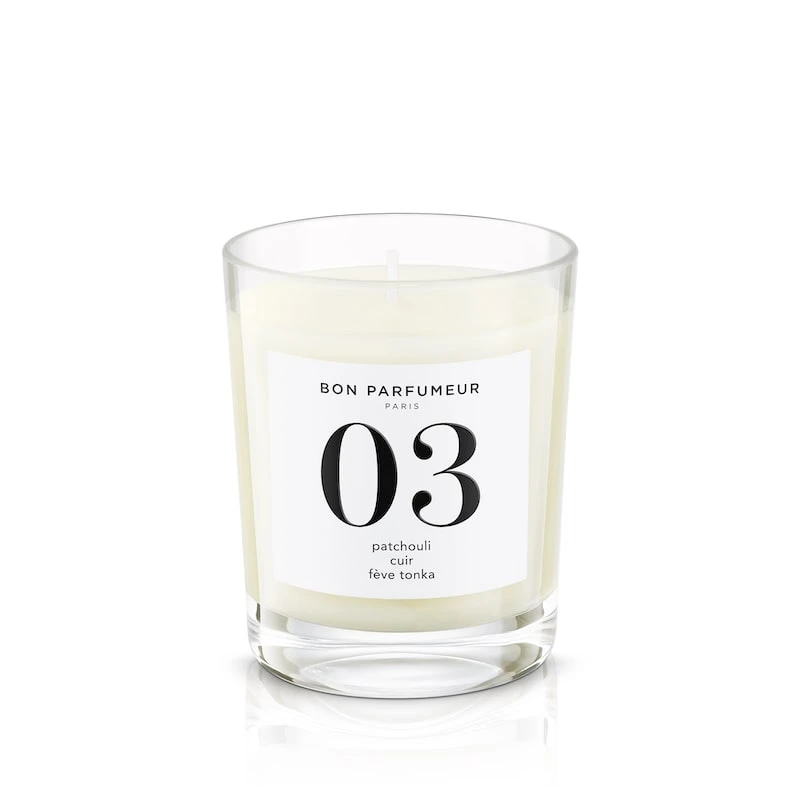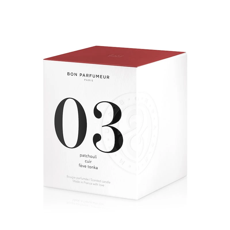 Bon Parfumeur’s Candle 03 fragrance is a daydream of leather and vanilla, with the warm, ambery scent of cistus. The backdrop is intensely wooded with patchouli from Indonesia and cedar from Virginia, USA. Tonka bean provides sweet, nutty and tobacco facets, and the musks are tinged with sensual animality.