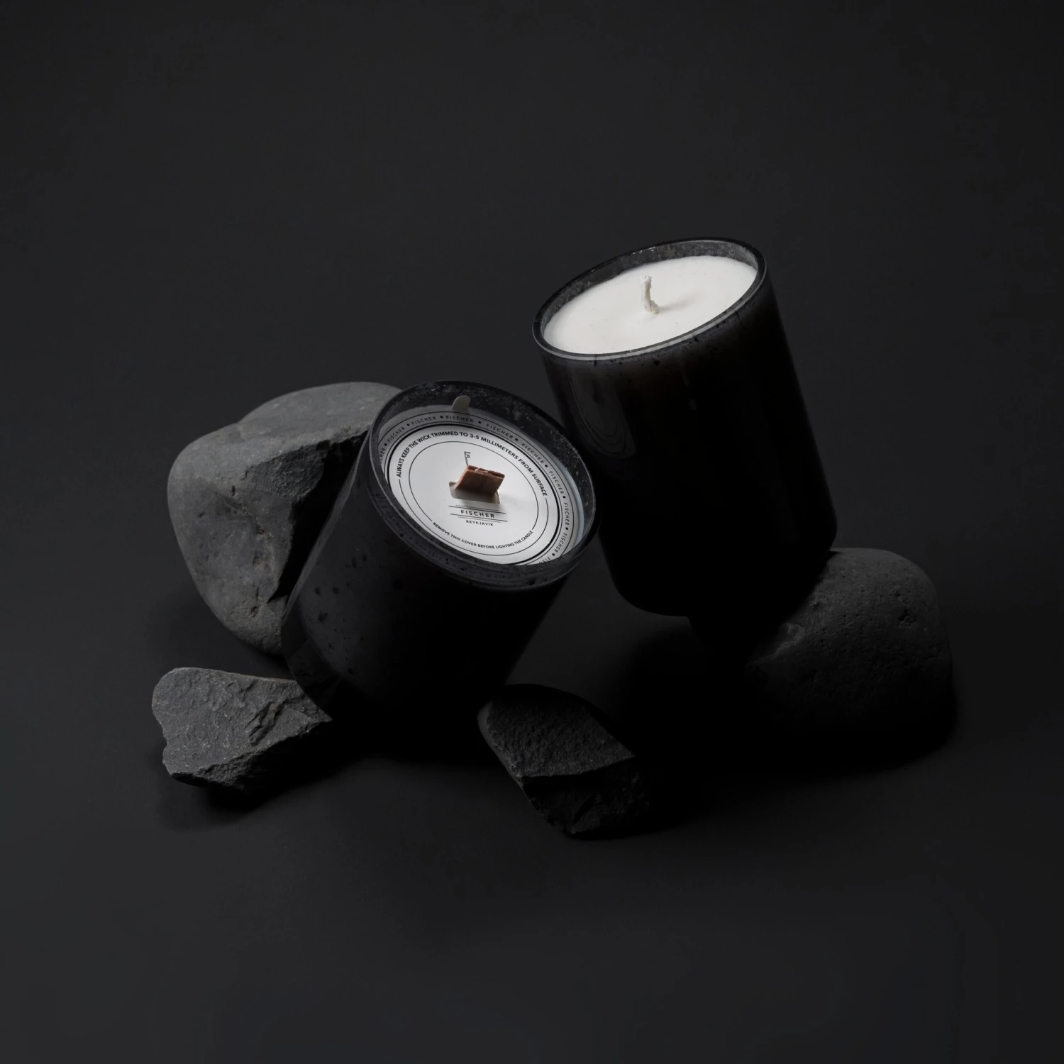 The Fischersund No. 54 scented candle is made using recycled soy wax and essential oils extracted from wild Icelandic herbs. It is hand-poured into its smoked black glass container. The woody scent is a go-to for its warm and comforting accord of vetiver, patchouli and animalistic musk.