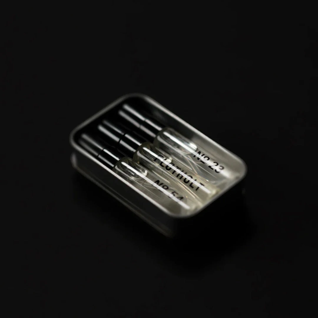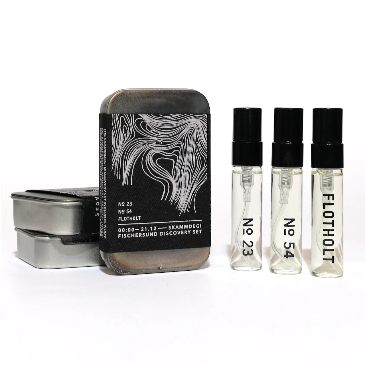 The set is housed in a hand-treated tin box made by their father Birgir and features fragrances No. 23, No.54 and Flotholt. Each bottle is a 5ml mini with spray, and a perfect way to find your new fragrance favorite.