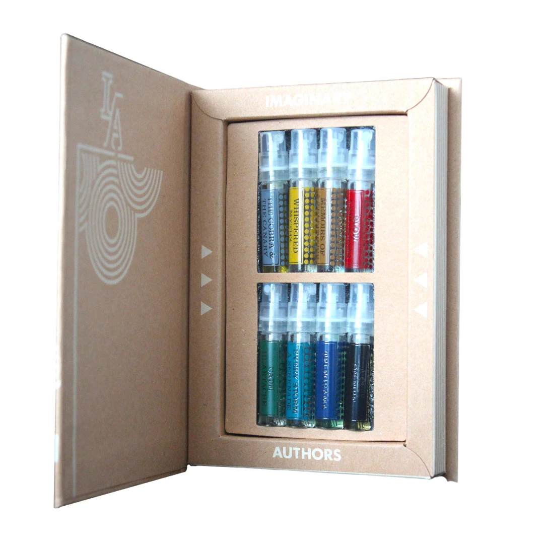 Set contains 8 x 2ml perfume sample spray vials housed in Imaginary Authors’ signature book-inspired packaging.