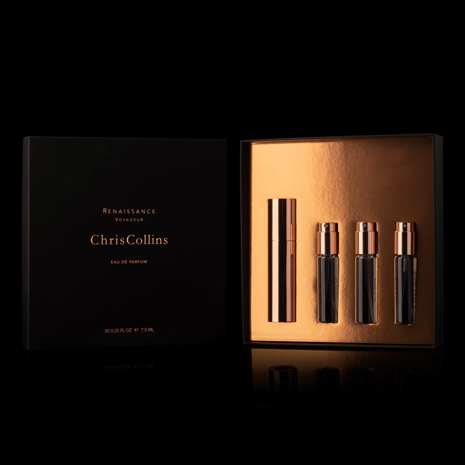 Sets of three fragrances from each scent collection express different facets of your personality. Choose a collection that matches your state of mind—thoughtful and flirtatious Dark Romance, warm and confident Renaissance, or romantic and wistful Anima. Plus, the luxurious travel case lets you bring your favorite anywhere in the world.